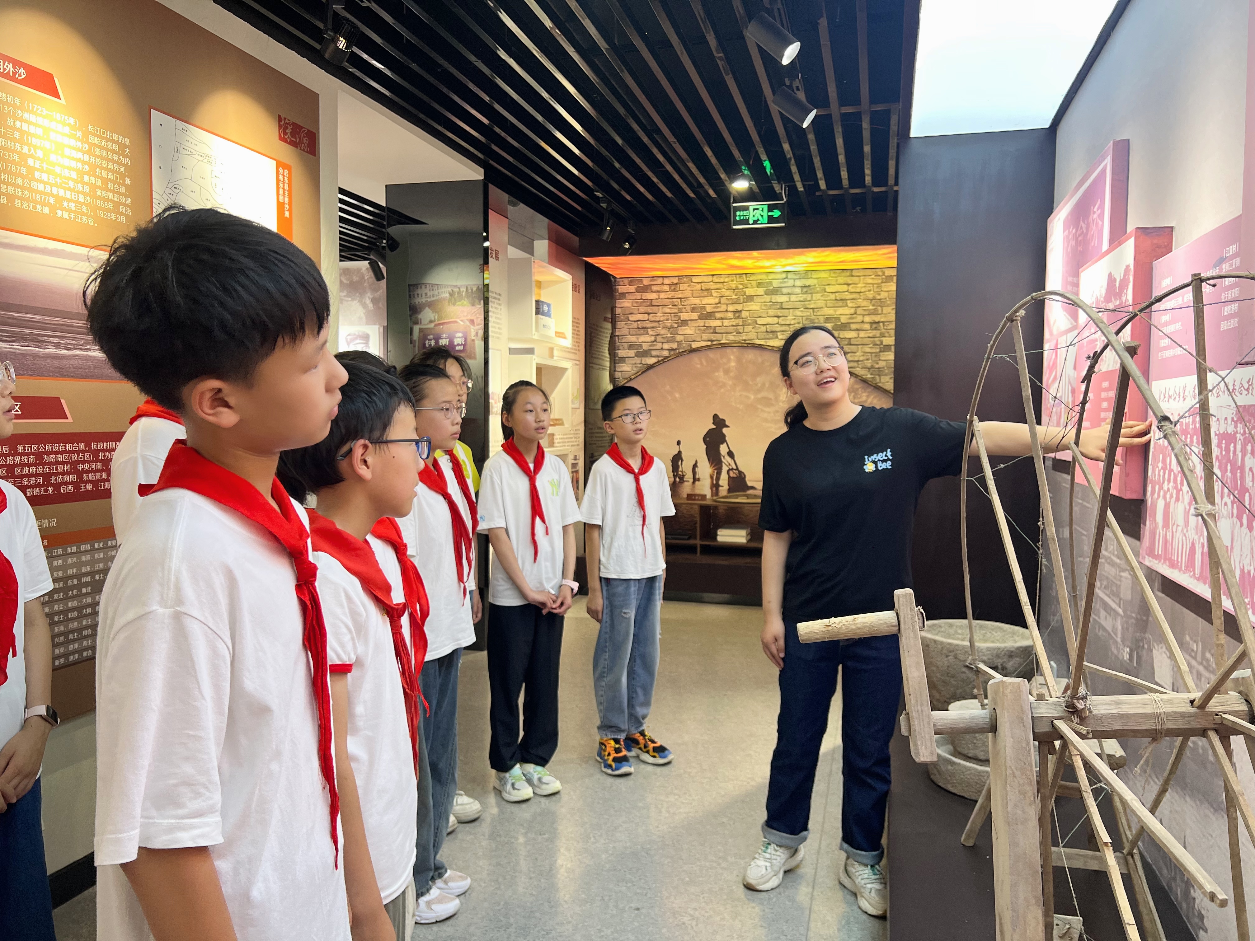 学榜样,知党史。为让少先队员们在“行”中更深入地了解家乡的红色文化,和合小学红领巾寻访小队系着红领巾、挥舞小红旗,走进启东市和合镇裕丰村村使馆。在村史馆里,一篇篇文字记载,一张张烈士图片,一件件珍贵的革命文物,再现了从解放战争中这些为国奋斗的志士仁人英勇事迹,重现了这些革命烈士们投身革命、忠诚为党、建设祖国的光辉一生,真切感受革命前辈顽强拼搏的斗争精神。启东市寅阳镇关工委常务副主任周卫红勉励队员们要牢记初心,不负革命先烈的付出与期盼,努力成为中国特色社会主义事业的优秀建设者和接班人。