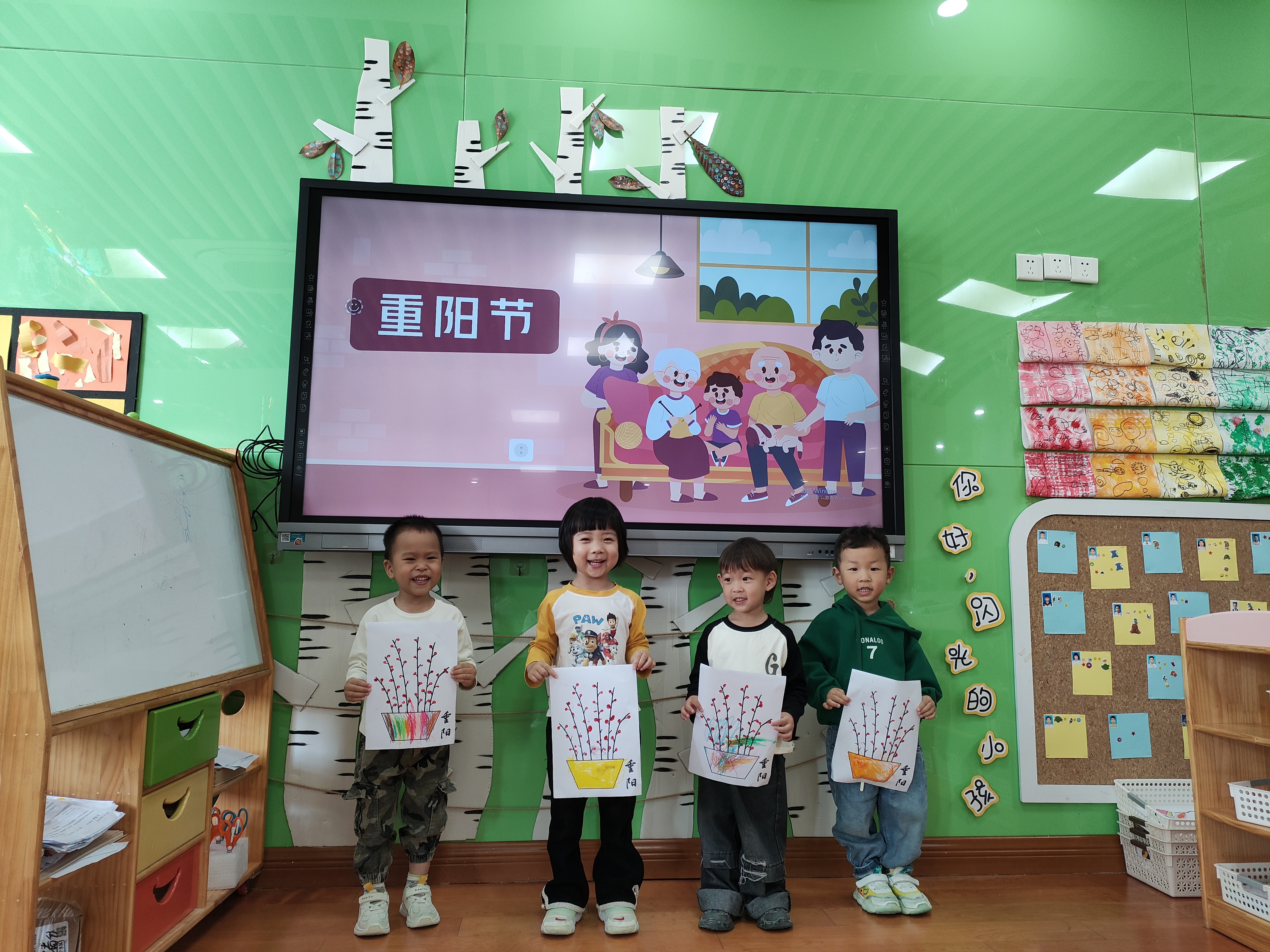 教师和孩子们“共话重阳”,通过图片视频、绘本故事等方式,让孩子们了解重阳节的来历和习俗,述说着爱与被爱的故事。