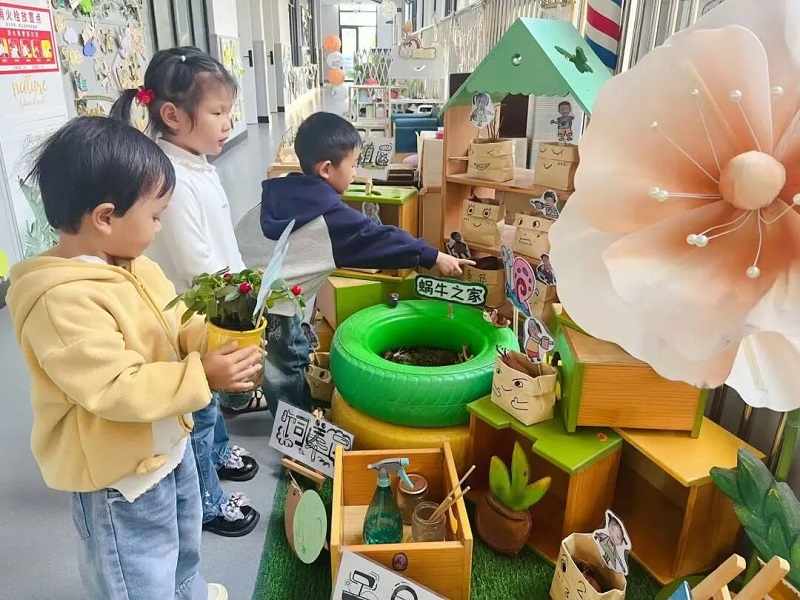近日,宝宝幼儿园围绕自然角进行秋季更新,各班教师互相观摩学习。